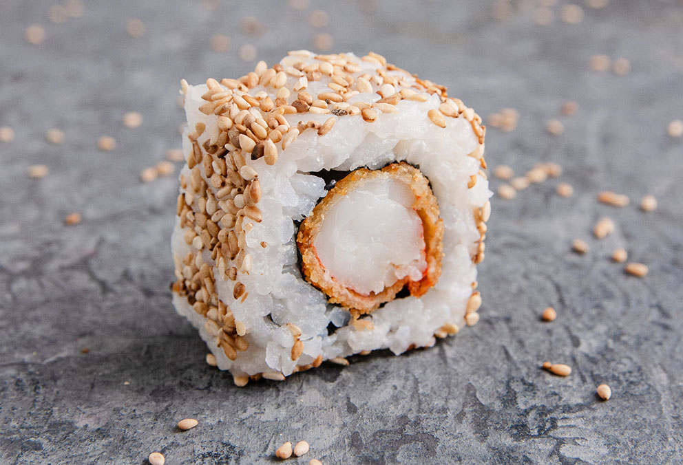 (con arroz). Salm�n, langostinos, queso philadelphia y verdeo envuelto en alga rebozada.