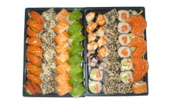 8 green rolls, 8 Buenos Aires rolls, 8 smokeds rolls, 8 New Yorks rolls, 8 makis, 8 niguiris de salmon, 4 niguiris de ahumado, 4 niguiris de langostinos, 10 sashimis de salmón, 10 philadelphia rolls,