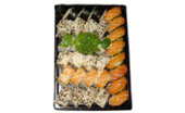 5 philadelphia rolls, 5 smoked rolls, 5 Buenos aires rolls, 10 makis, 3 niguiris de salmón, 3 de ahumado, 4 green roll.